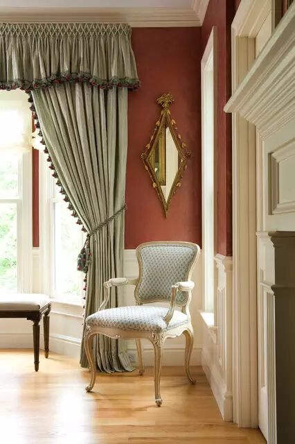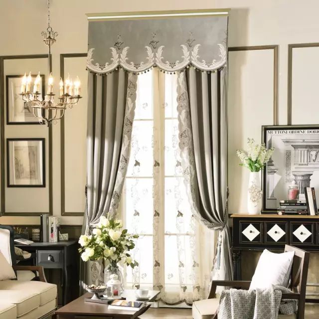 傳統歐式的風格比較華貴而隆重,因此最標準的窗簾首先有個窗簾盒裝上奢華的簾頭,而款式上一般還有穗邊的設計。