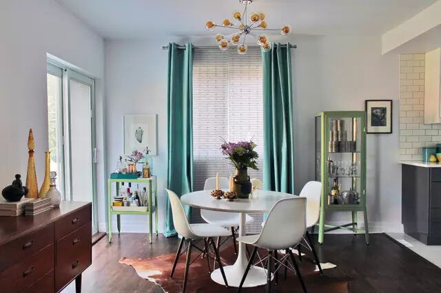 另外,純色窗簾也是在此風格中特別多見的。純色的選擇一定要呼應家具的顏色。