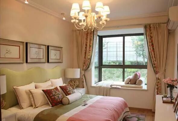 這種適合臥室小,但是有大飄窗的家庭,裝在飄窗里顯得臥室寬敞;里面頂裝,不占空間,還美觀!如果你的飄窗面積小,建議不要這樣,做了會感覺飄窗上太擁擠了;