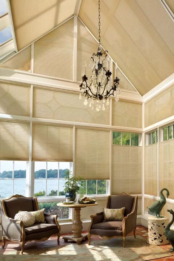 內(nèi)置錫紙的蜂巢簾是為了更好地控制溫度,提高了防紫外線和隔熱功能。